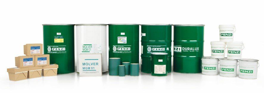 FENZI développe et fabrique des mastics de scellement CEKAL polyuréthanne gamme POLIVER AC , polysulfure gamme THIOVER F/1 , thermofusible HOTVER A+ , butyle première barrière CEKAL BUTYLVER en blocks,fûts et rouleaux (noir et gris)